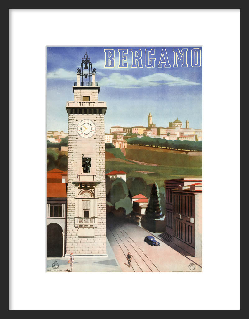 We’ve expertly restored Bergamo, Italy travel poster from a high-resolution scan so that your print faithfully represents the original.