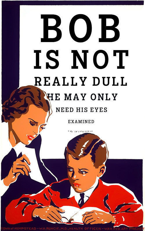 Based on our popular John Is Not Really Dull WPA print we now present the custom poster 'Bob is not really dull. He may only need his eyes examined.'
