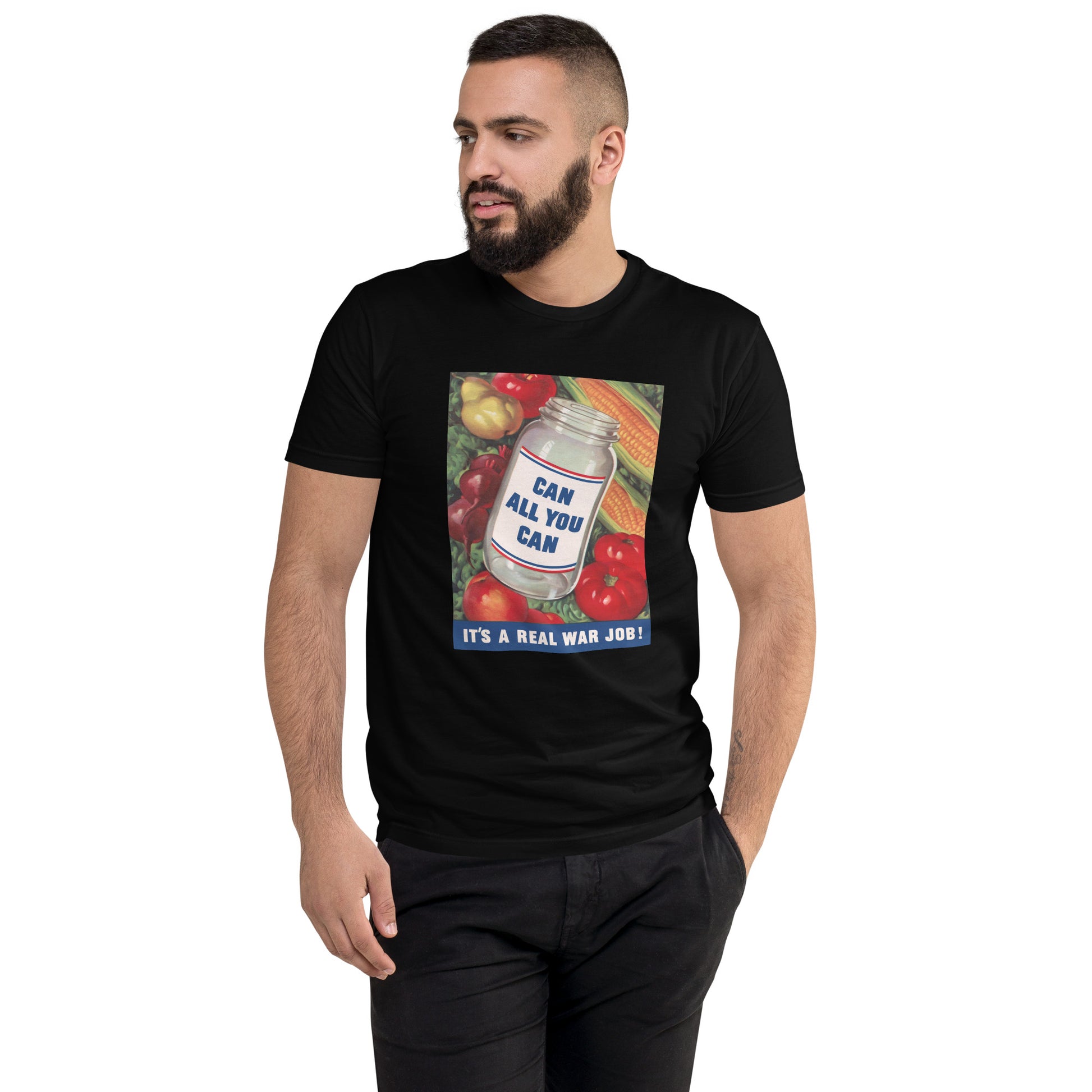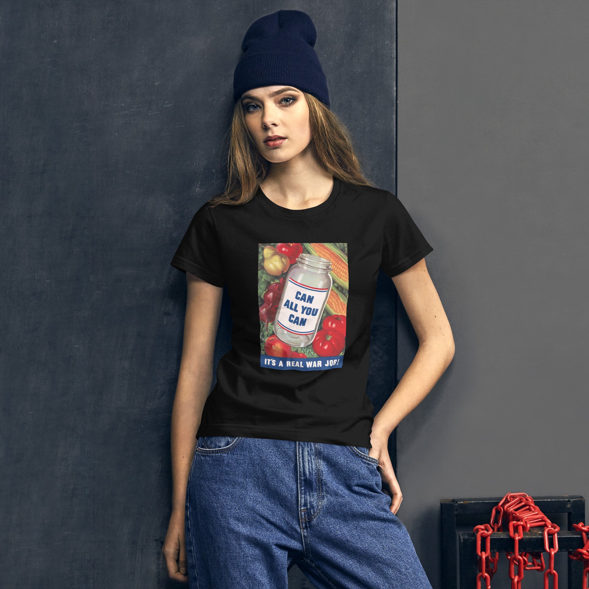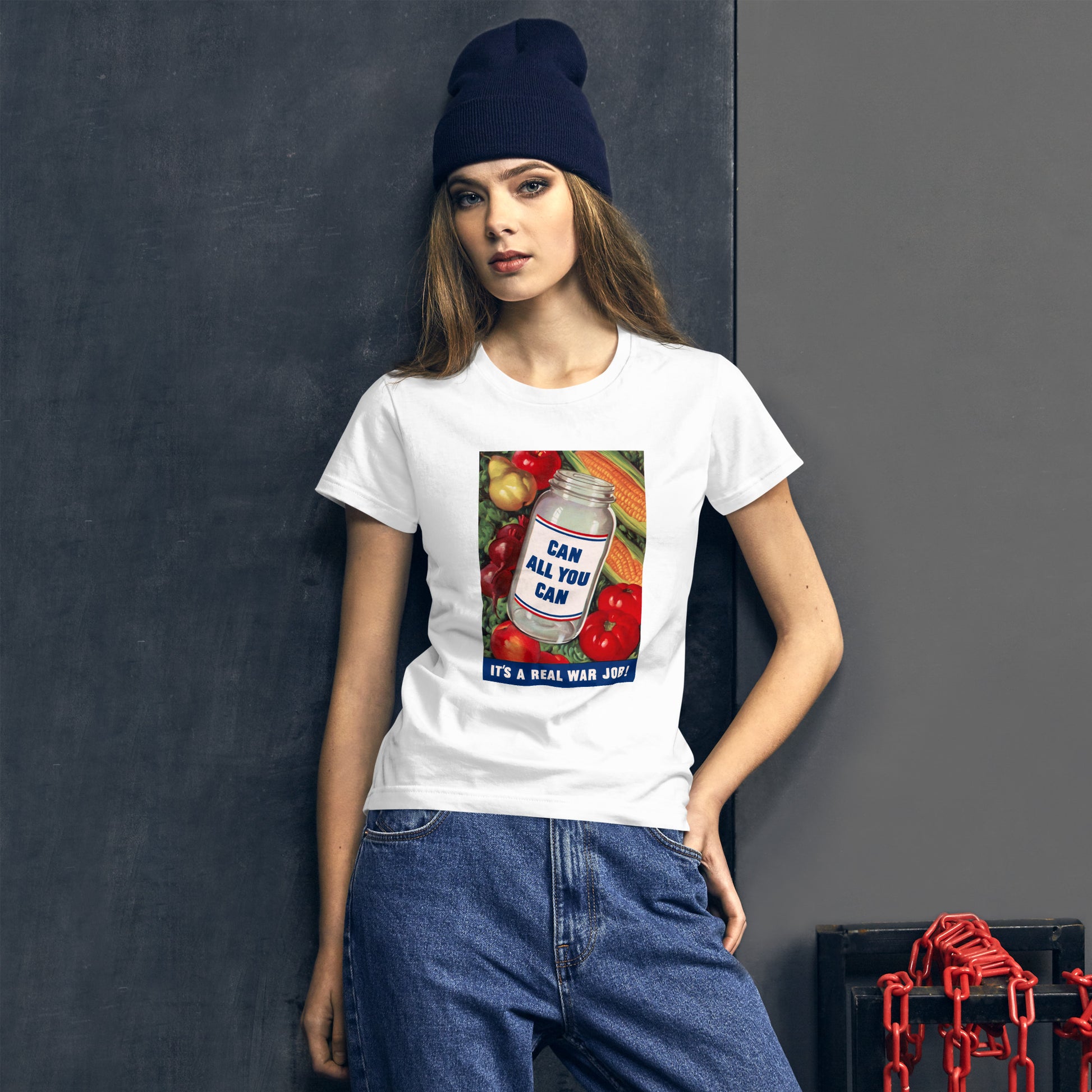 Can All You Can. It's a Real War Job! From WWII and the U.S. Office of War Information comes this poster promoting rationing and food conservation. Circa 1943. WWII food canning poster showing a mason jar with tomatoes, corn, radishes, a pear and apples.