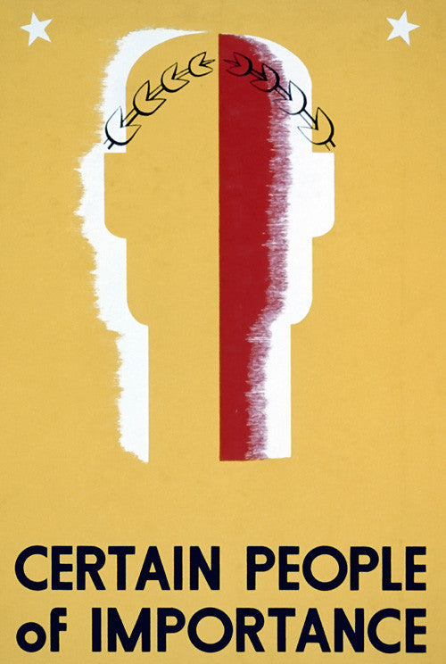 This poster created by artist Kenneth Whitley for the WPA Federal Art Project in Illinois, circa 1939. It shows a head covered with a laurel wreath and reads, 'Certain People of Importance.'