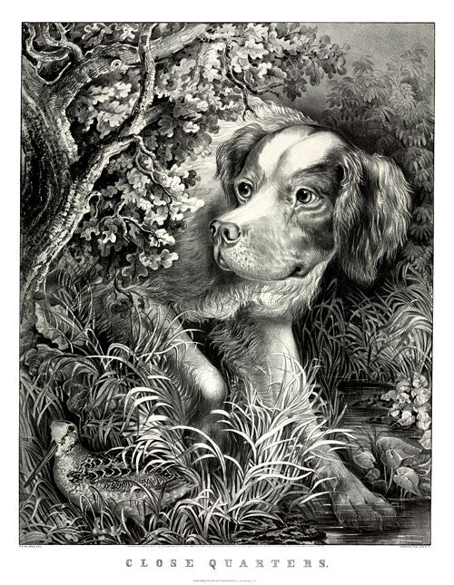 This lithograph of a dog and its prey was published by Currier & Ives in 1866. Currier & Ives was a prolific printer of lithographs at the turn of the century.