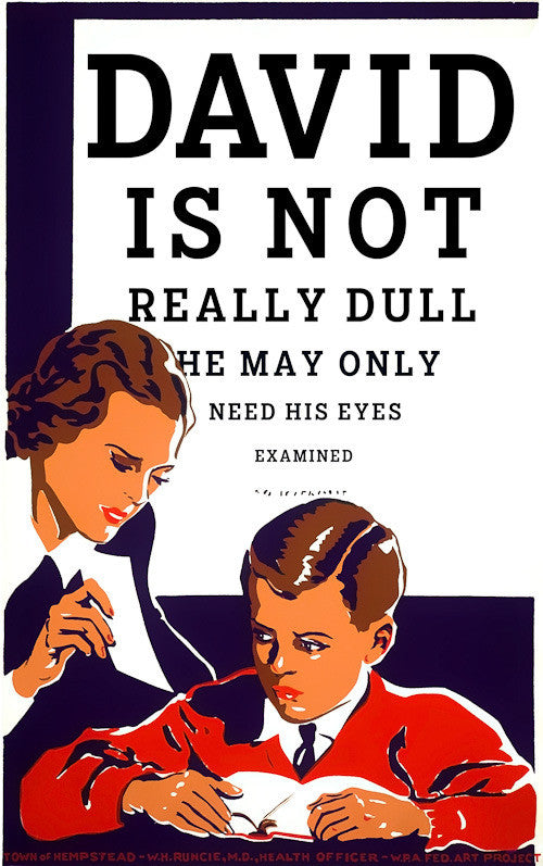 Based on our popular John Is Not Really Dull WPA print we now present the custom poster 'David is not really dull. He may only need his eyes examined.'