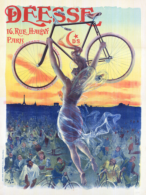 Paper: White borders. Premium matte, 200 gsm (80 lb). Image dimensions may not match paper. Printed image sizes below for Déesse Bicycle Poster.