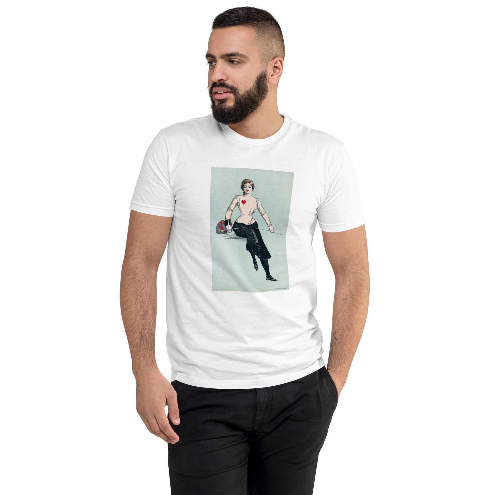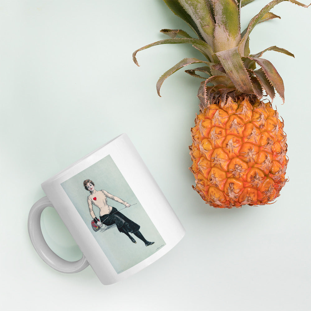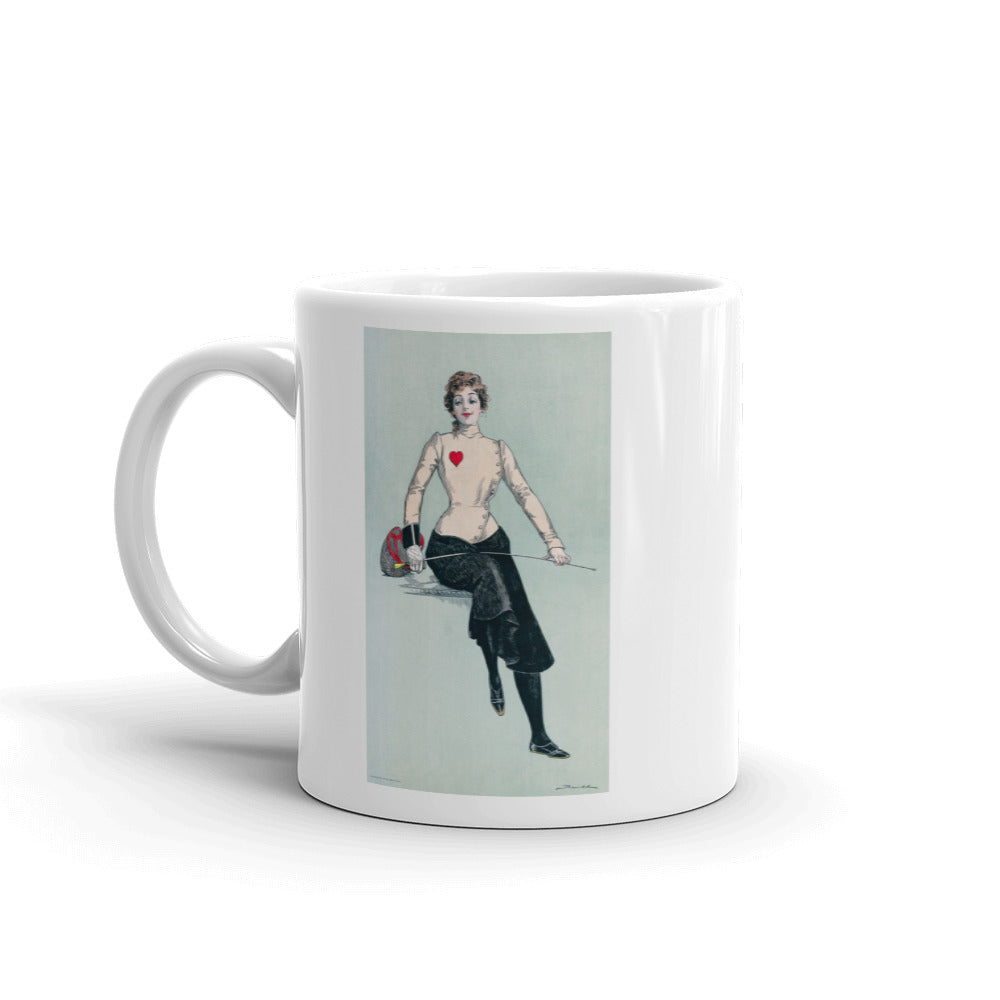 Fencing: Repose! In this vintage print from 1901 a female fencer sits at rest. Reproduced from hand colored, wood engraving print.