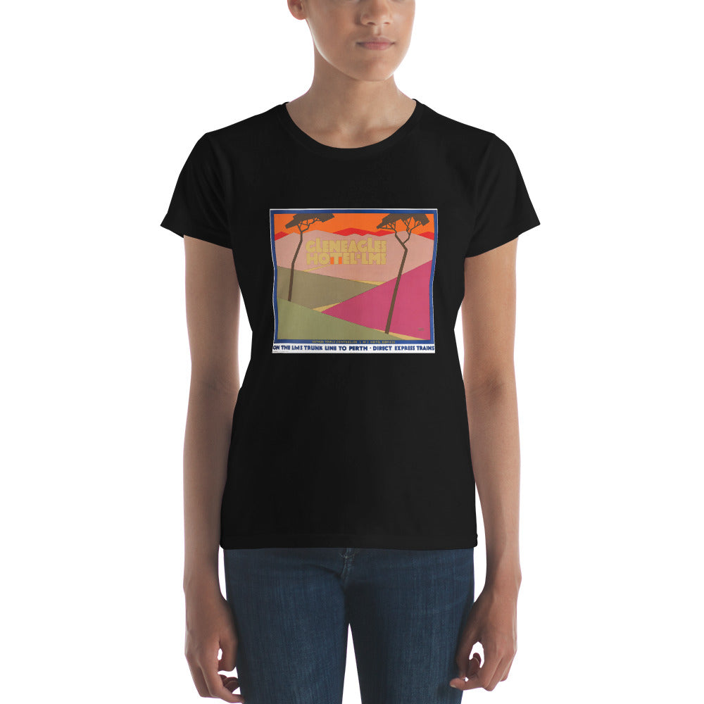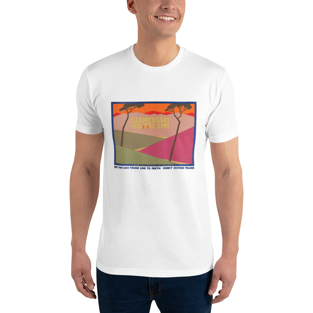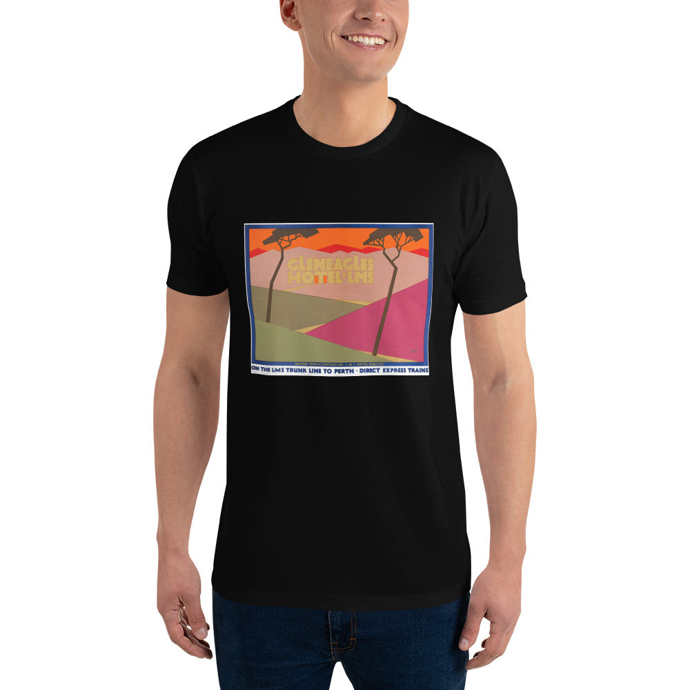 Gleneagles Hotel LMS: On the LMS Trunk Line to Perth, Direct Express Trains. Vintage travel poster for railway transportation to the Gleneagles Hotel in Auchterarder, Scotland. Illustrated by Fred Taylor. Circa 1920s.