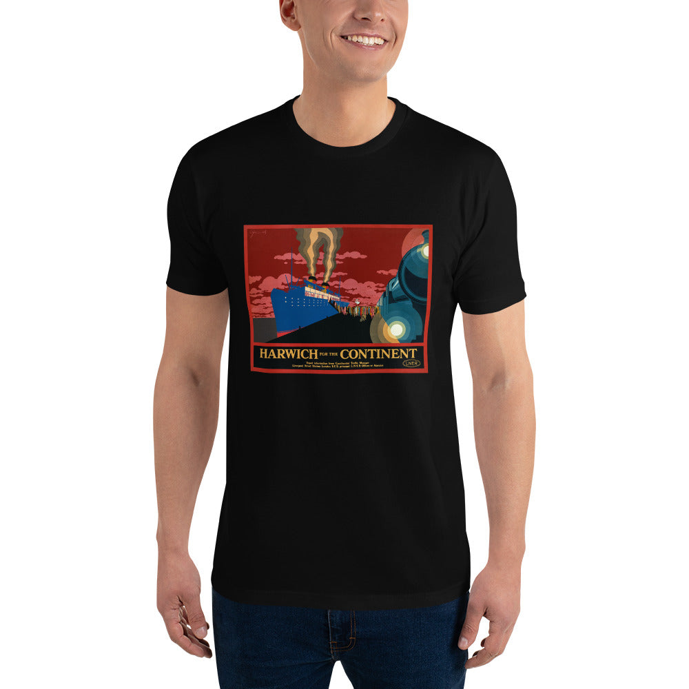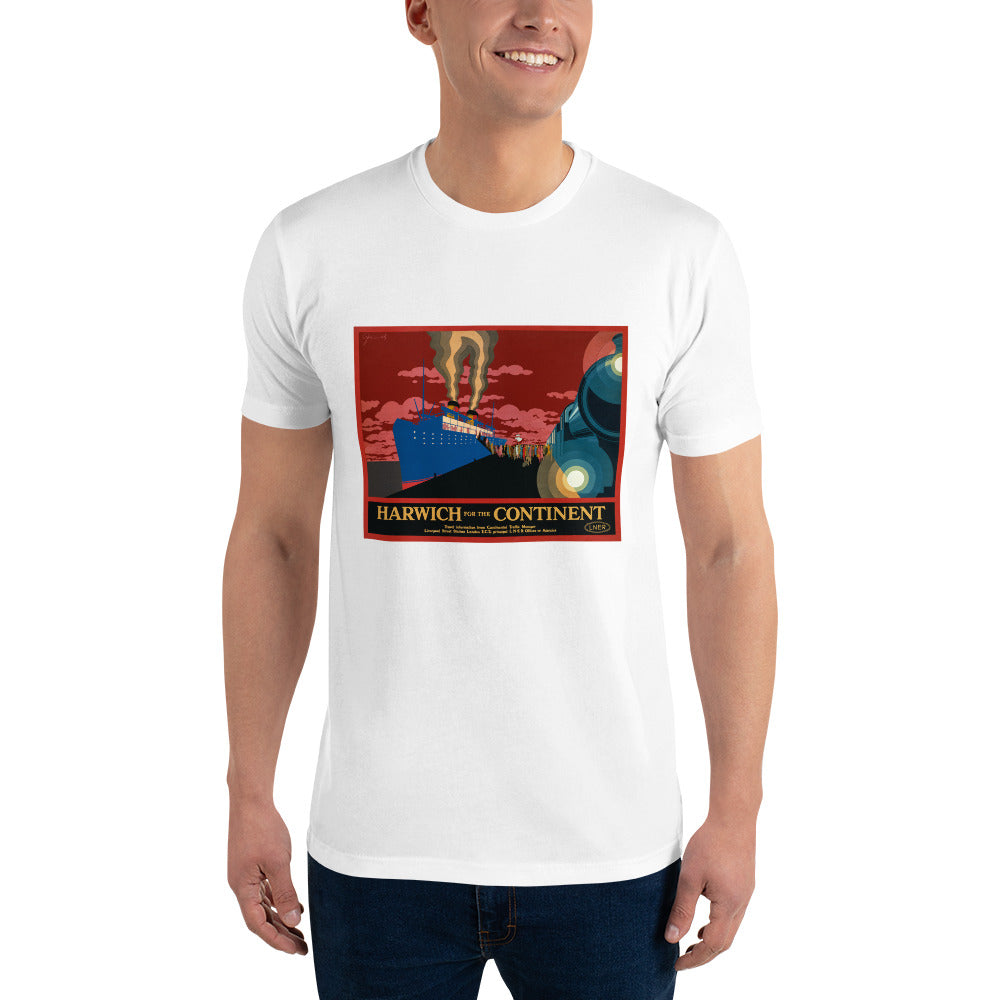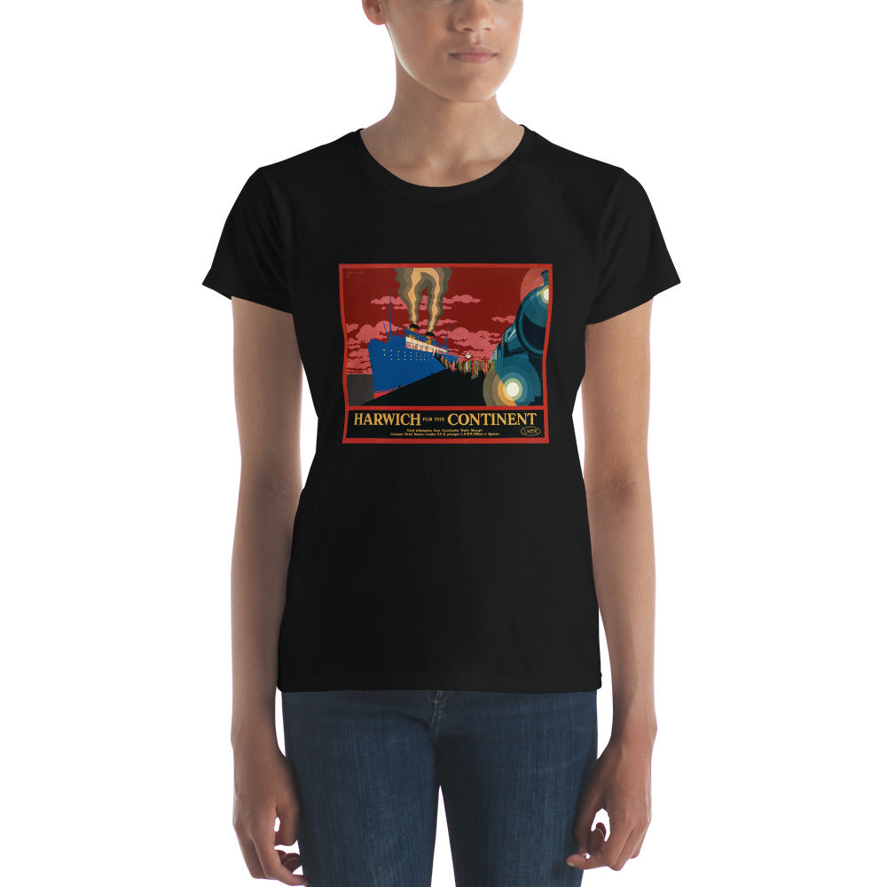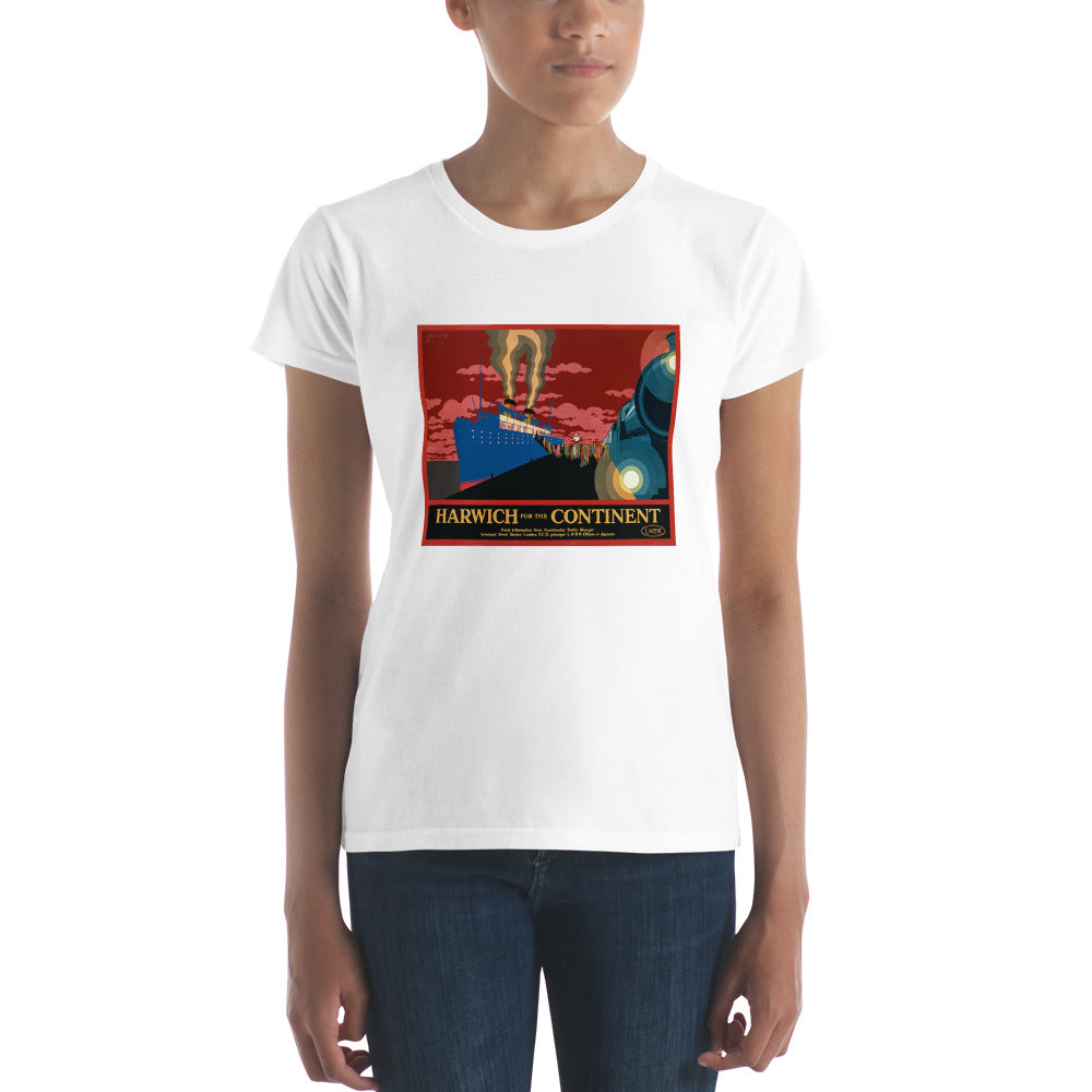 Harwich for the Continent. This vintage poster from the 1930s was published by the London & North Eastern Railway and advertises railway and steamer travel at the port of Harwich, England. Illustrated by Ladislas Freiwirth, circa 1930.