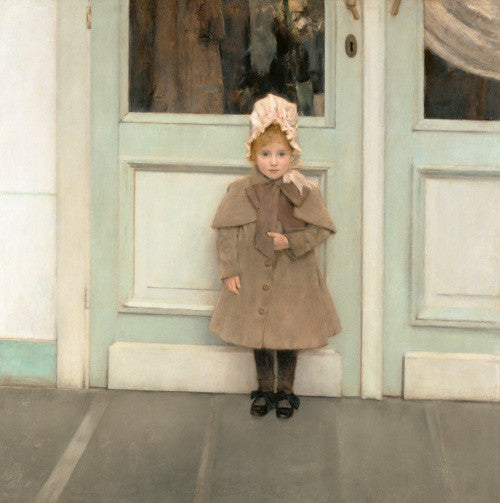 Jeanne Kéfer by Fernand Khnopff. Belgian, Brussels, 1885. Oil on canvas. Fernand Khnopff painted Jeanne Kéfer, the daughter of a friend, standing on a porch in front of a closed door. Khnopff was a popular society portrait painter in the 1880s.