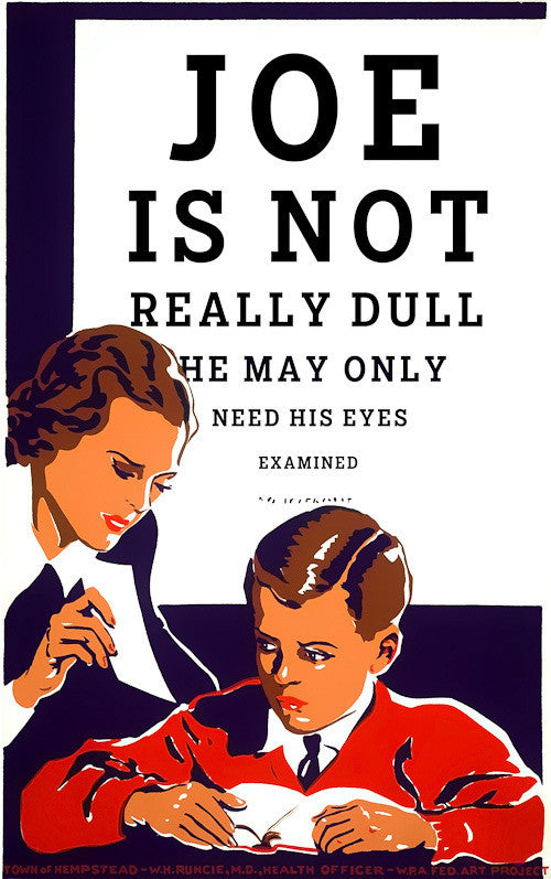 Based on our popular John Is Not Really Dull WPA print we now present the custom poster 'Joe is not really dull. He may only need his eyes examined.'