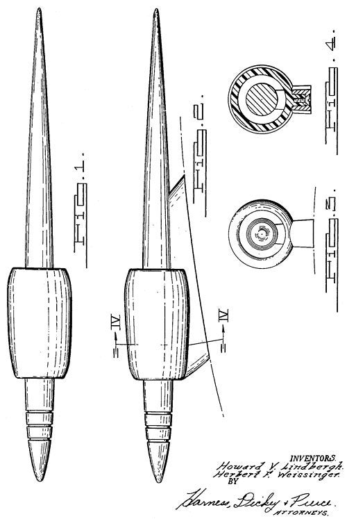 A hood ornament design by Howard V. Lindbergh and Herbert F. Weissinger that was assigned to the Kaiser-Frazer Corporation. The patent was issued in 1950.