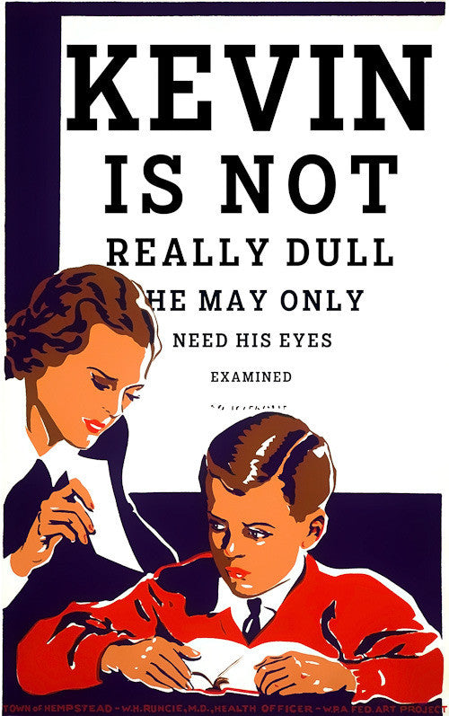 Based on our popular John Is Not Really Dull WPA print we now present the custom poster 'Kevin is not really dull. He may only need his eyes examined.'