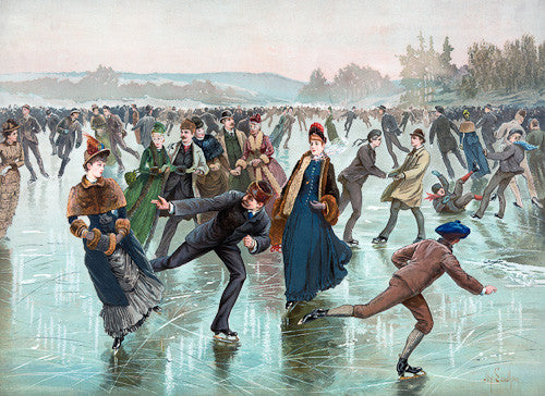 Reproduction of Skating aquarelle print published by L.Prang & Co., Boston. Circa 1885.