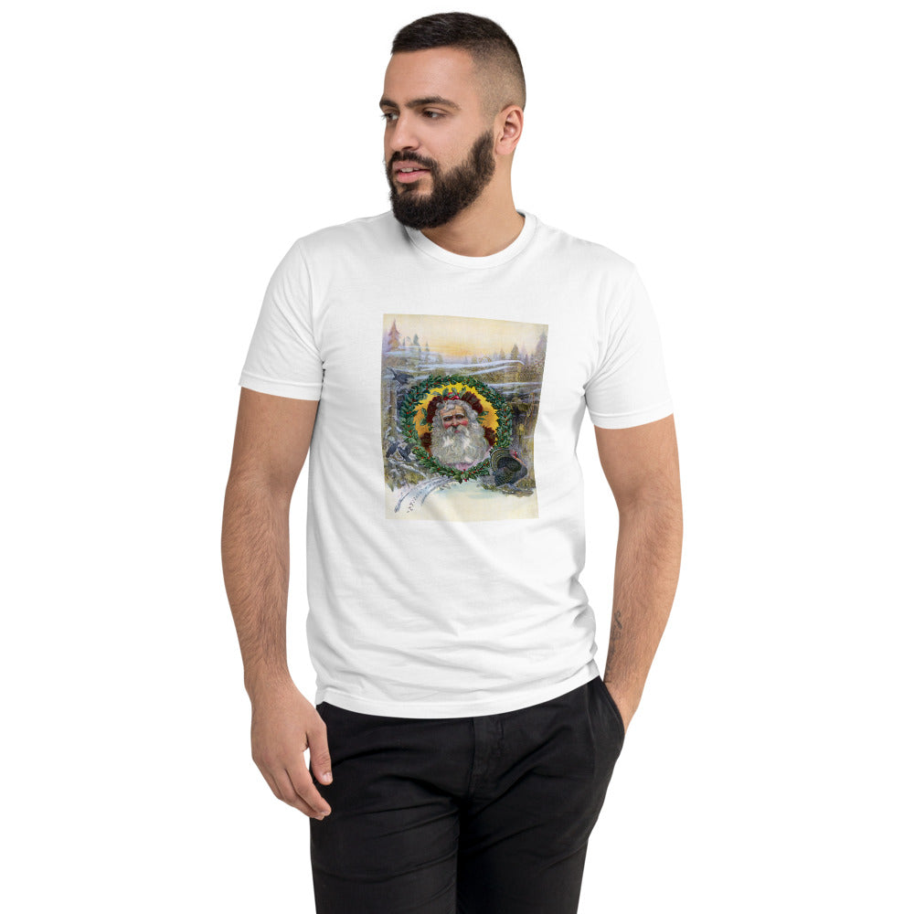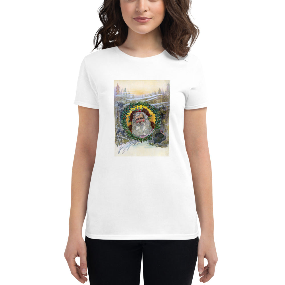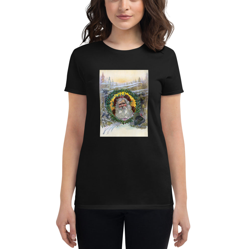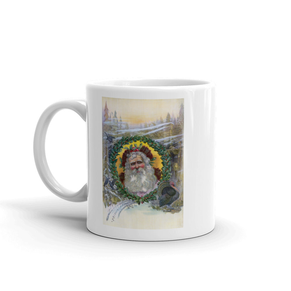 Santa Claus, 1896. In this 1896 illustration the face of Santa Claus is pictured inside a Christmas wreath.